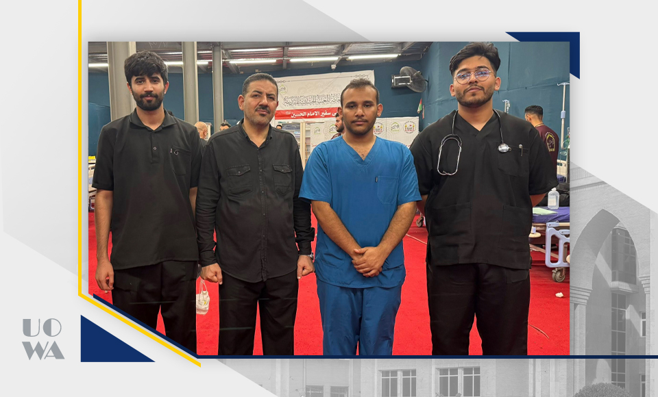 Amidst the sublime spiritual atmosphere of the immortal Arbaeen pilgrimage, the Deanship of the College of Medicine at Warith al-Anbiya University extends its highest expressions of appreciation, pride, and respect to our dear students participating in the medical service detachments deployed along all pilgrims' routes. We express our deep appreciation for the time, effort, and expertise they have devoted to treating, curing, and alleviating the pain of the honorable pilgrims. This would not have been possible without the desire, knowledge, and skill of this good group of our sons and daughters, which enabled them to perform this great task. The evaluations we received from the doctors supervising the work of our volunteer students were wonderful and a source of pride for us all. All supervisors noted the high discipline of our dear students, in addition to their academic potential and clinical skills, which qualify them to work at all times and under the most difficult conditions. This undoubtedly reflects the efforts of the college's professors in training and developing the theoretical, practical, and clinical skills of our dear students. This would not have been possible without the continuous support and ongoing supervision of the esteemed University President. In conclusion, we can only say: