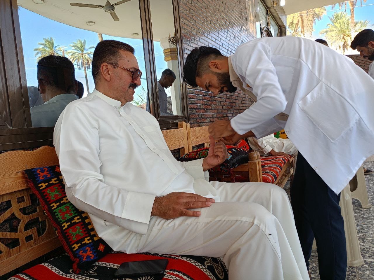 Within the community service activities of the College of Nursing, fourth-year students of the Community Health Nursing Department visited Al-Hussainiya District and provided nursing services to the residents and health education for some communicable diseases.