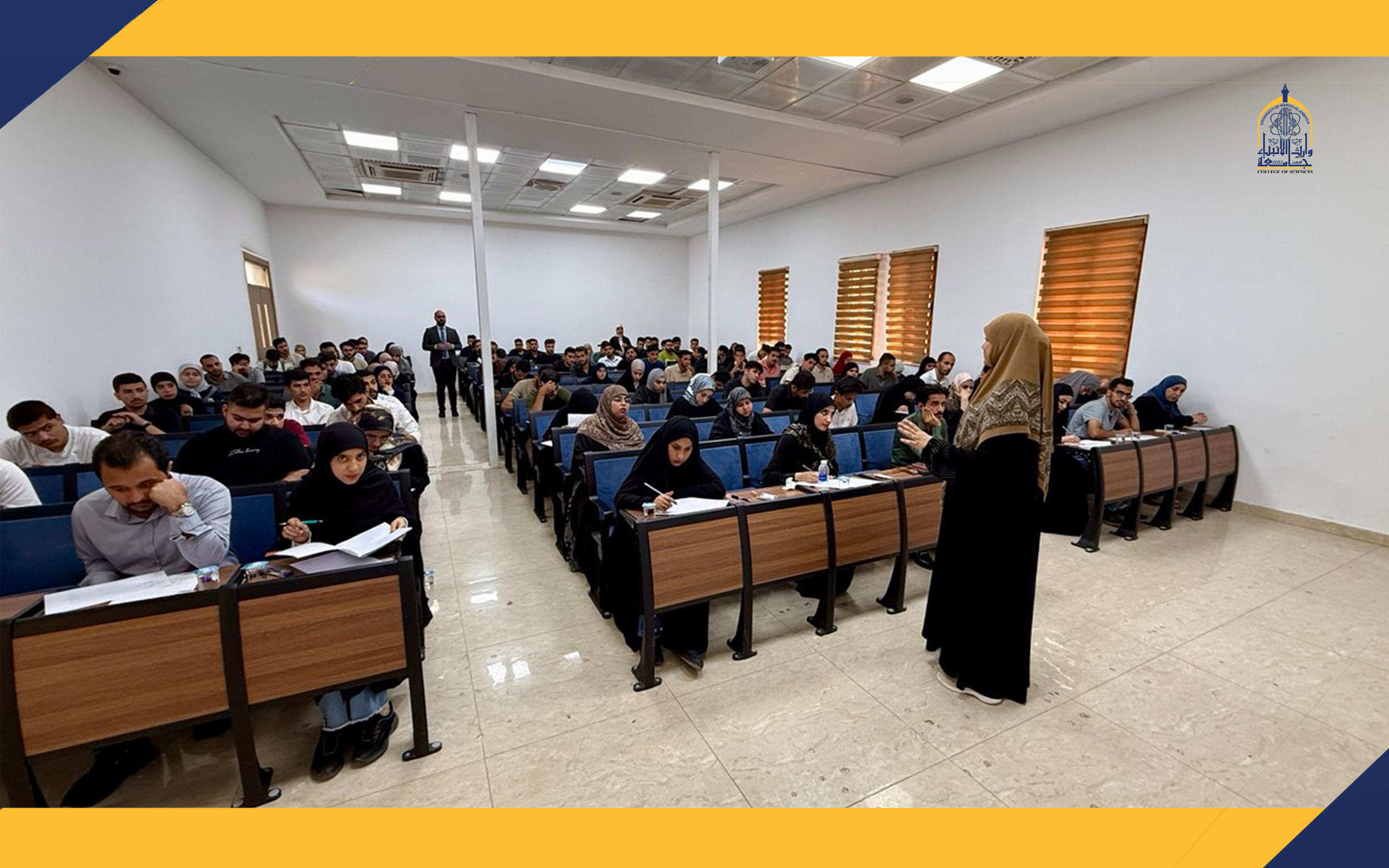 The final examinations for second-year students in the Medical Physics and Information Technology departments at the College of Science – University of Warith Al-Anbiyaa have officially commenced. This academic milestone is being conducted under the direct supervision of Assistant Professor Dr. Shaimaa Hussein Noufal, Dean of the College, and with the oversight of Assistant Professor Dr. Haider Mohammed Ali Al-Ghanmi, Head of the Information Technology Department.