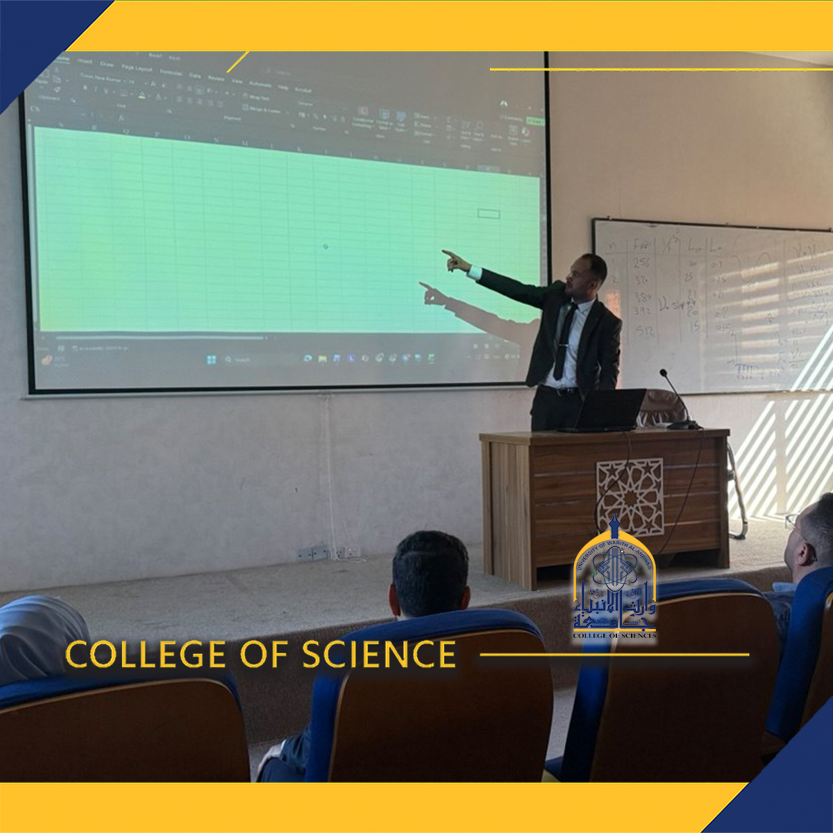 The College of Science organized a training workshop entitled: “Skills for Using Microsoft Office Applications Effectively,” targeting the faculty members of the college. The workshop was delivered by Assistant Lecturer Karar Sadiq Mohsen and Assistant Lecturer Nabeel Sadiq Abdul-Abbas.