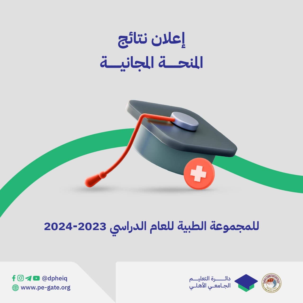 The Ministry of Higher Education and Scientific Research announces the acceptance of three thousand two hundred and three students under the free scholarship offered by the Medical Group (Medicine, Dentistry, Pharmacy) in private universities and colleges for the academic year 2024/2023.