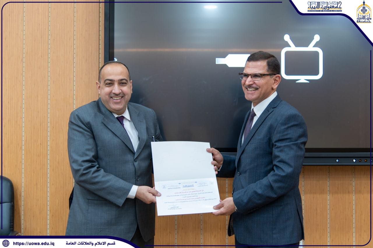 At the end of the course, Dr. Abbas Al-Daami, Assistant to the University President for Academic Affairs, presented a certificate of appreciation to the trainer, acknowledging his dedicated efforts in conducting this training program.